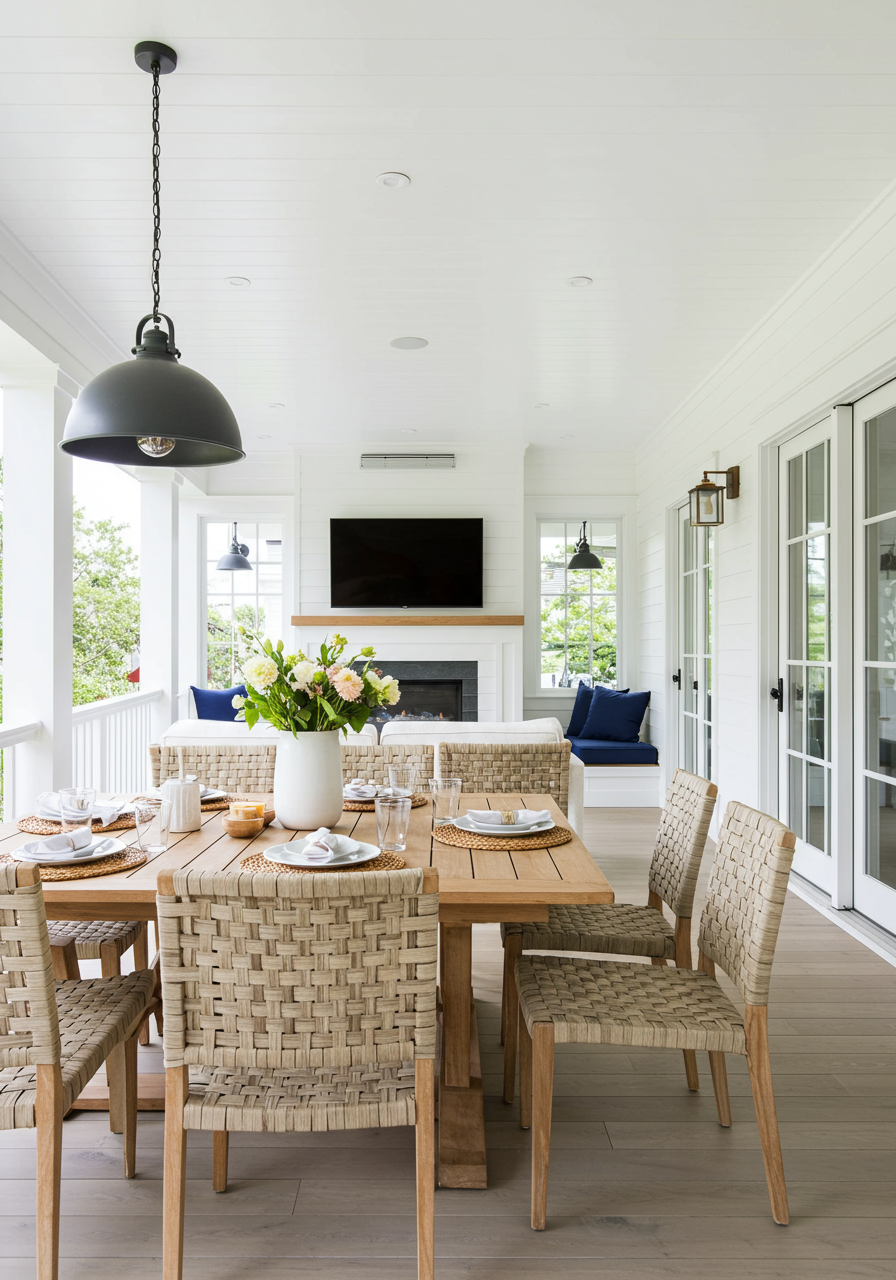 After driving back and forth to different locations and return lines, I gave up. I decided to get creative and piece together items from different designers. I fell in love with the Studio McGee Patio Dinning set from Threshold, but the chairs had been sold out for months. So... I purchased JUST the table. Then searched "accent" chairs on the Target website. We found these beautiful chairs by Hearth & Hand that had a similar oak, wood wash.