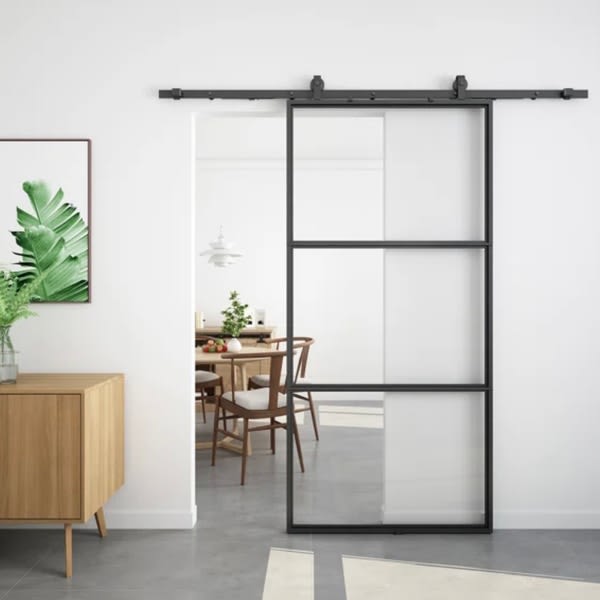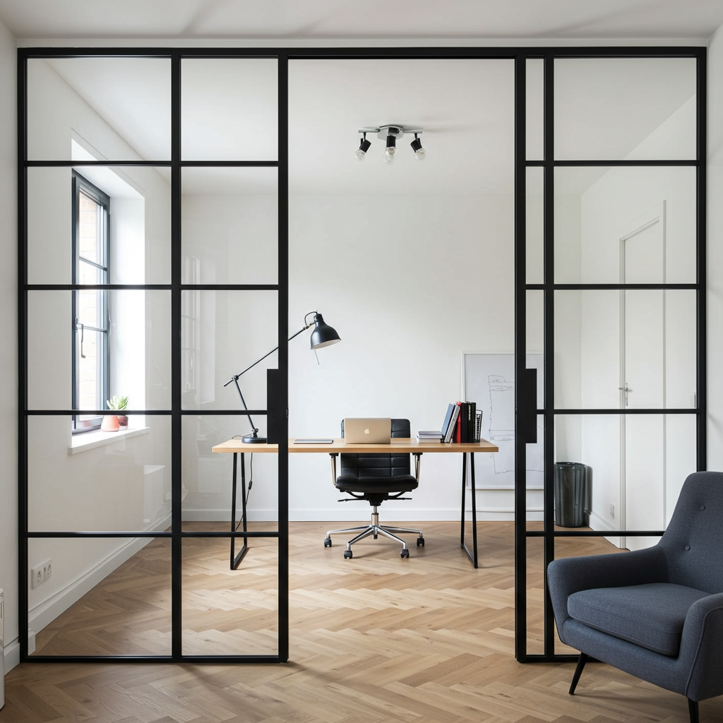 Our home office also serves as a guest bedroom, so we needed to create privacy for our guests. The below retailers offer the look of custom glass at a more affordable cost. You can also choose between clear glass panels or frosted, depending on the use of the space.
