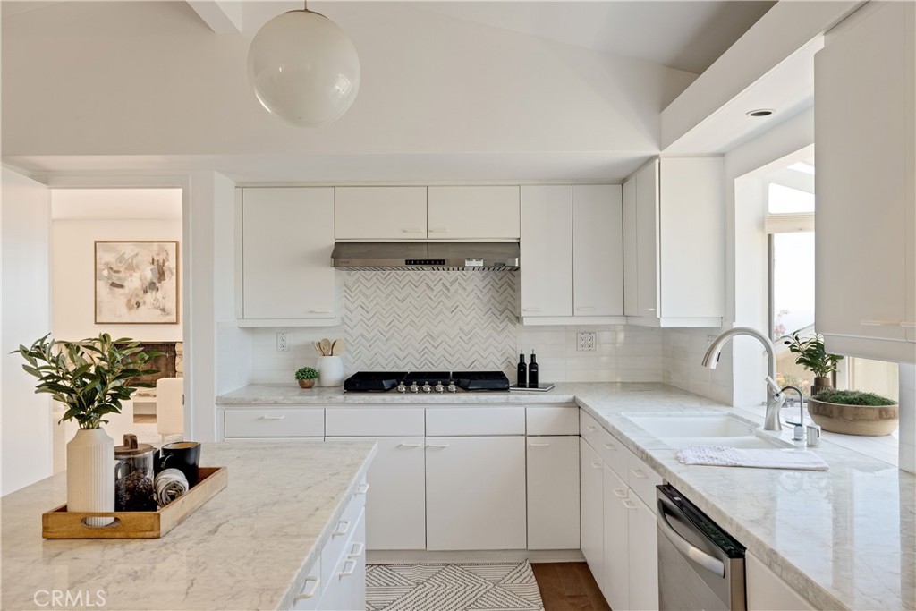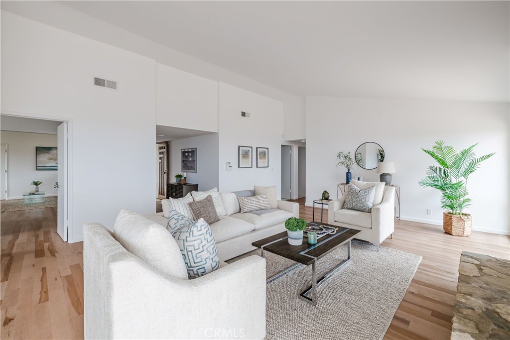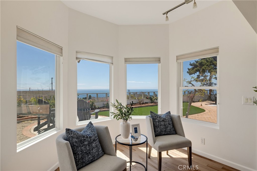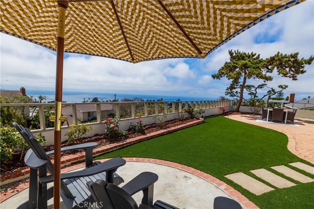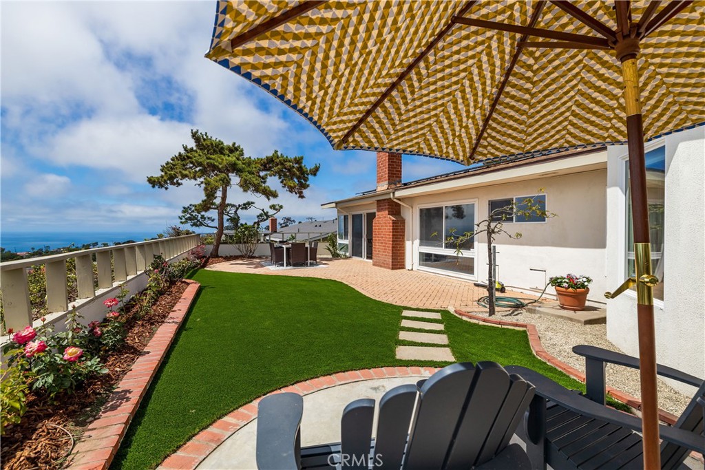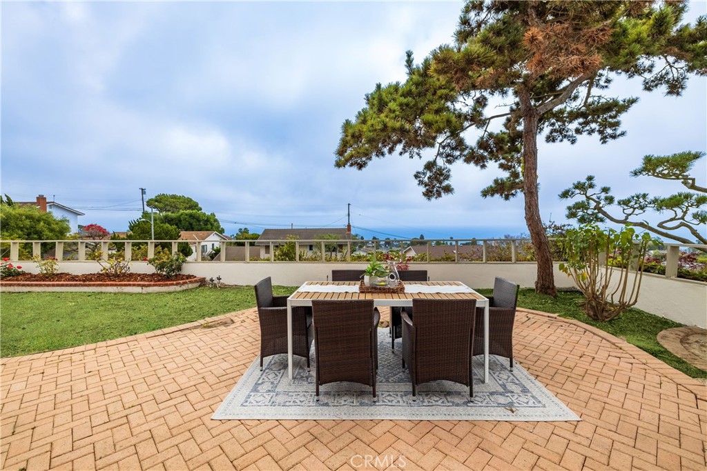 This 5-bedroom 2-bathroom home offers approximately 2,300 square feet of stylish, comfortable living space on an expansive 9,494 lot. Each of the five bedrooms offers space and privacy, ideal for family, guests, or home office setups. The 5th bedroom can also be used as a fabulous bonus room adding versatility to the floorplan--ideal as a media room, playroom, gym, or home office--and features a sliding glass door that opens directly to a lush outdoor garden, perfect for peaceful retreats or al fresco relaxation. The kitchen boasts brand new high-end appliances, quartz countertops, and an island with storage, opening into a sunlit great room with vaulted ceilings and a nice sitting area. The primary suite is a private sanctuary, featuring ocean vistas, an ensuite bathroom, and a beautiful sitting area. The home features newly installed dual-pane windows, sliding doors, solar panels and modern recessed lighting. Outside, a beautifully paved patio ideal for outdoor dining and lovely landscaped gardens create your own personal paradise.